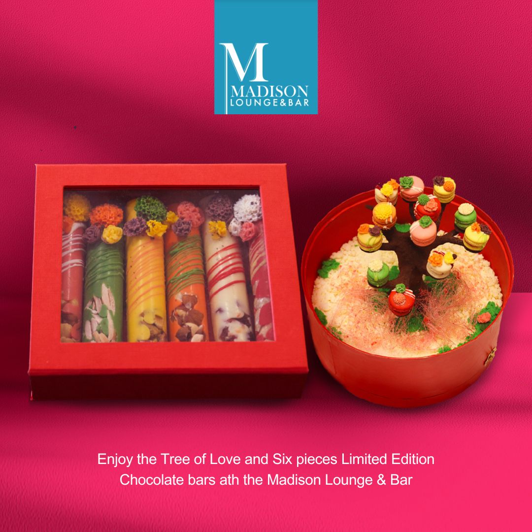 매디슨 라운지 앤 바 트리 오브 러브 매디슨 라운지 앤 바의 트리 오브 러브 발렌타인 케이크와 한정판 초콜릿 바 6종으로 사랑의 계절을 축하해 보세요. 전화 +63 917 8536 112 또는 (02) 7239 7788로 문의하세요.