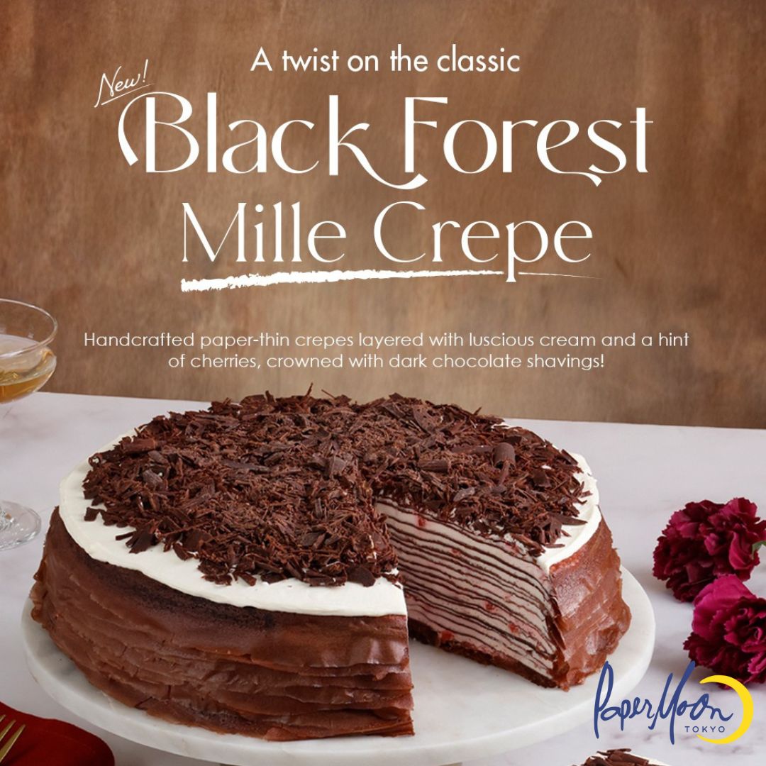 페이퍼문이 클래식한 맛을 재해석한 블랙 포레스트 밀 크레이프와 함께 사랑은 달콤합니다. 페이퍼문 카페 2층, 뉴포트 몰