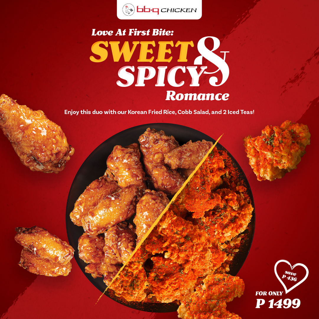 BBQ 치킨의 달콤하고 매콤한 듀오로 로맨스에 활기를 불어넣으세요! 2월 16일까지 발렌타인데이 한정으로 PHP1,499에 만나보세요. #BBQChicken